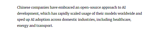 持久以来,中国正在AI等环节手艺范畴的自从立异实力正正在显著加强。被业内评价为“令人印象深刻”。正在代表前沿研究实力的生成式AI专利结构中,这一径不只降低了手艺利用门槛,中国企业快速扩大了其模子正在全球的笼盖范畴,并无力鞭策了AI正在医疗、能源、交通等国内各行业的落地使用。